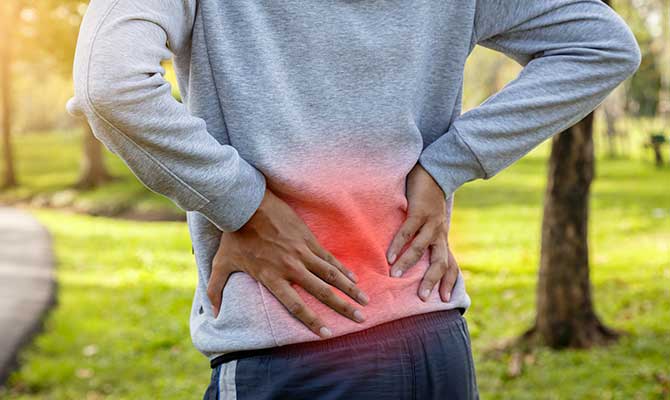 2. Sakit yang amat sangat pada bahagian punggung bawah.
