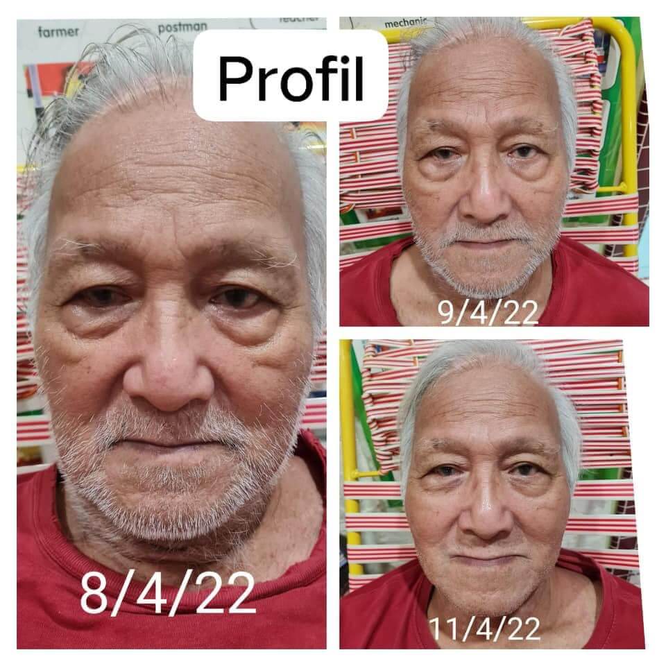 Perubahan Masalah Kulit Wajah (video di atas) – Daripada jeragat, eye bag berubah menjadi muka lebih tegang, muda, eye bag dan jeragat banyak berkurang :