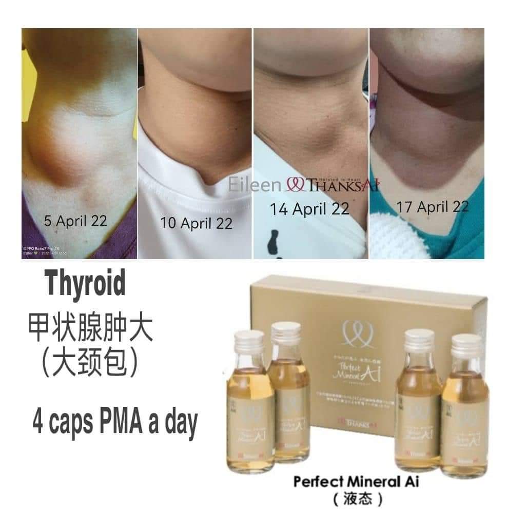 Jadi, saya mula minum Perfect Mineral Ai dengan banyak, dan selepas lebih kurang 12 hari, masalah goiter saya bertambah baik! Terima kasih kerana bertemu bidadari cinta” 🙏❤️😇
